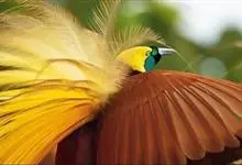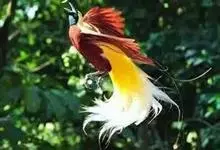 大极乐鸟是极乐鸟属中最大的鸟种。成年雄鸟体长可达到43厘米,雌性可达35厘米。雄鸟的额、颊、喉等墨绿色;头、颈黄色;上体暗赤栗色;腹部葡萄红色,胁部有长饰羽,其基部橙黄,中部黄色,…全部>>