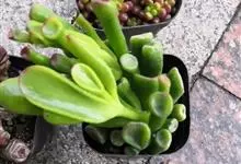 筒叶花月,是景天科青锁龙属的多年生草本植物。植株多分株,灌木状,茎较粗壮,圆柱形,表皮灰褐色;叶片肉质,互生,呈圆筒状,簇生于茎或分枝顶端,叶端呈斜截形,截面为椭圆形;花呈星状,淡白色;花期秋季。…全部>>