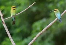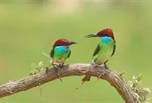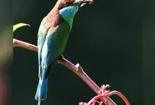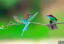 蓝颊蜂虎:是蜂虎科、蜂虎属的鸟类,共有2个亚种。体长27-33厘米,翼展46-49厘米,体重38-50克。嘴形细长而下弯,先端尖,…全部>>