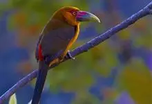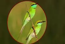 蓝喉蜂虎中型鸟类,体长26~28厘米。头顶至上背栗红色或巧克力色,过眼线黑色,腰和尾蓝色,翼蓝绿色,腰及长尾浅蓝,中央尾羽延长成针状,明显突出于外。颏喉蓝色,其余下体和两翅绿色。嘴细长而尖,黑色,…全部>>
