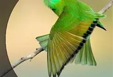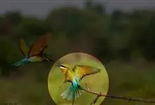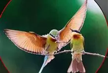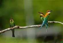 栗喉蜂虎是蜂虎科蜂虎属的鸟类。有热带鸟类羽毛艳丽的特征:喉部是栗红色的,黑色的过眼纹,翅膀和背部是绿色的,尾翼是蓝色的,飞行时翅膀下面的羽毛是橙黄色的,在阳光的照射下,它们全身闪烁着金属般的艳丽光泽,…全部>>