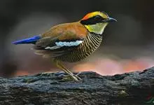蓝喉蜂是蜂虎科蜂虎属鸟类。体长26-28厘米,嘴长而弯曲,有明显细长的中央尾羽。头部、颈部和背部为巧克力色,有黑色眼纹。喉部、腰部和尾羽为蓝色。腹部和两翼为绿色。幼鸟外观似成鸟,头部、颈部和背部为绿色,…全部>>