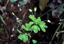天葵 Makino)是毛茛科天葵属多年生小草本植物,块根长达2厘米,外皮棕黑色。茎高可达32厘米,基生叶为掌状三出复叶;叶片轮廓卵圆形至肾形,小叶扇状菱形或倒卵状菱形,两面均无毛;叶柄长可达12厘米,…全部>>