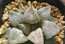 白银寿Haworthia emelyae var.emelyae Poelln.,中文惯称白银寿,是小型多肉植物,原产于南非开普省。肉质叶呈莲座状排列,叶色深绿或红褐色,顶端二角形,稍凸起,透明,…全部>>