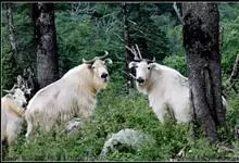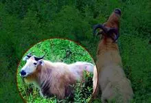 羚牛,偶蹄目牛科羚牛属哺乳动物,俗称扭角羚、野山牛、盘羊。其体形粗壮。尾短。吻鼻部隆起且裸露。前额隆起,毛短而蓬松。角基粗,由头顶长出后先向上升起,又突然翻转,靠近头部,复向外伸,然后又向后弯转,…全部>>