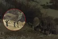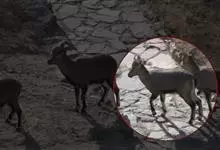 岩羊是偶蹄目牛科岩羊属哺乳动物。颜色与岩石相像,两性皆具角,雄羊角大而弯曲,角外表具不明显的横棱且体壮实,雌羊角短小;头较小,眼大,耳小,颏下无须;体背面为棕灰或石板灰色略有蓝色反光,…全部>>