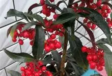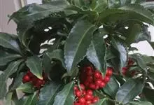 朱砂根是报春花科紫金牛属植物,又名铁凉伞、红铜盘、百两金、大罗伞、开喉箭等,为常绿小灌木,高1~2米,茎粗壮,无毛,除侧生特殊花枝外,无分枝,叶片革质或坚纸质,椭圆形、椭圆状披针形至倒披针形,…全部>>