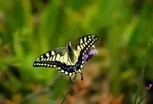 金凤蝶,是鳞翅目凤蝶科凤蝶属动物。金凤蝶为中型凤蝶,翅展70-84毫米,翅背面底色黑褐色,翅脉黑色,翅室具黄斑;前翅背面基部呈暗黄色,亚外缘为黑色,内具一列小黄斑;后翅背面亚外缘区具黑宽边,…全部>>