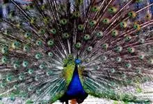 绿孔雀是鸡形目雉科孔雀属鸟类,别名:孔雀、越鸟、爪哇绿孔雀。雄性绿孔雀全身呈翠绿色,并反紫铜色光。头顶有一簇直立的冠羽,尾上复羽发达的约长1米,每羽端部有一个蓝色和翠绿色镶嵌的眼状斑,…全部>>