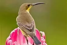 纹背捕蛛鸟:为太阳鸟科捕蛛鸟属的鸟类。是太阳鸟科中体型较大的一种,体重25-45克,体长160-210毫米。嘴粗长而尖且向下弯曲。上体橄榄黄色具黑色中央斑纹。下体淡黄白色满布黑色纵纹,尾具黑色次端斑。…全部>>