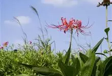 石蒜[学名:Lycoris radiata Herb.],是石蒜科石蒜属的多年生草本植物,别名彼岸花、红花石蒜、死人花、蟑螂花、龙爪花等。石蒜的叶狭带状,中间有粉绿色带,秋季出叶。伞形花序,花鲜红色。…全部>>