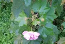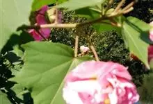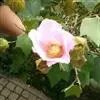 木芙蓉,锦葵科木槿属落叶灌木或小乔木。小枝上有细绒毛;叶片为卵状心形,托叶为披针形,常早落;花单生,花萼为钟形,花冠初为白色或淡红色,后逐渐变为深红色;果实为扁球形,有淡黄色的毛附着。花期8到10月。…全部>>