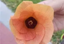 吊灯扶桑 Hook. f.)为锦葵科木槿属的常绿灌木。高达3米;小枝常下垂;叶椭圆形或长圆形,先端尖或短渐尖,基部楔形;花梗细,无毛或具纤毛,中部具节;蒴果长圆柱形;花期全年。因似灯笼高挂,…全部>>