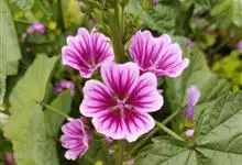 锦葵:二年生或多年生直立草本,高50-90厘米,分枝多,疏被粗毛。叶圆心形或肾形,具5-7圆齿状钝裂片,两面均无毛或仅脉上疏被短糙伏毛。花3-11朵簇生,小苞片3,长圆形疏被柔毛;花紫红色或白色,…全部>>