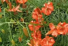 山丹是百合科百合属的多年生草本植物。鳞茎卵形或圆锥形,鳞片长圆形或长卵形,白色;叶散生茎中部,线形,边缘有乳头状突起;花单生或数朵成总状花序,花鲜红色,常无斑点,花被片反卷,…全部>>
