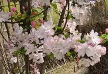 海棠花,蔷薇科苹果属植物,乔木。海棠花小枝粗壮,呈圆柱形;叶片椭圆形至长椭圆形;边缘有紧贴细锯齿,有时部分近于全缘;花序近伞形,花瓣卵形;基部有短爪,白色,在芽中呈粉红色;果实近球形,成熟时为黄色,…全部>>