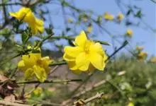 迎春花,木犀科素馨属的多年生木本植物,小枝细长直立或者呈拱形下垂;叶片呈卵形或椭圆形;花单生于叶腋处,苞片呈披针形或椭圆形,花冠为金黄色,花瓣通常为倒卵形或椭圆形;花期在6月。…全部>>