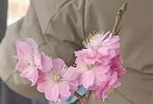 美人梅是蔷薇科李属的落叶小乔木。叶互生,呈广卵形或卵形,紫红色;花呈淡紫红色,半重瓣或重瓣,花叶同放,繁密有香味;果实呈球形,呈鲜红色;花期3-4月;果期5-6月。美人梅原产于美国,…全部>>