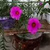 大花马齿苋:一年生草本,高10-30厘米。茎平卧或斜升,紫红色,多分枝,节上丛生毛。叶密集枝端,较下的叶不规则互生,叶片细圆柱形,无毛。花单生或数朵簇生枝端,直径2.5-4厘米,…全部>>
