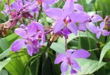 紫花苞舌兰:植株高达1米。假鳞茎卵状圆锥形,具3-5枚叶。叶质地薄,淡绿色,狭长,具折扇状的脉。花葶长达1米,下部具数枚筒状鞘;总状花序短,具约10朵花;花紫色;花瓣近椭圆形,比萼片大,…全部>>