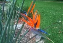 鹤望兰,别名天堂鸟,为鹤望兰科鹤望兰属的一种多年生草本植物;无木质树干;花序生于与叶柄近等长或稍短的花序梗上,佛焰苞1;花较小,萼片橙黄色,长7.5-10厘米,箭头状花瓣基部具耳状裂片,…全部>>