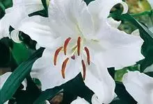 麝香百合:在中国台湾亦称铁炮百合。鳞茎球形或近球形,高2.5-5厘米;鳞片白色。茎高45-90厘米,绿色,基部为淡红色。叶散生,披针形或矩圆状披针形,两面无毛。花单生或2-3朵;花喇叭形,白色,筒外…全部>>