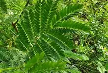阔荚合欢 Benth.)是豆科合欢属植物,高8-12米;树皮粗糙;嫩枝密被短柔毛,老枝无毛。二回羽状复叶;总叶柄近基部及叶轴上羽片着生处均有腺体。头状花序花时直径3-4厘米;总花梗通常长7-9厘米。…全部>>