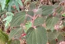 叶底红,别名:叶下红、江南野海棠、大毛蛇,血还魂,还魂红、沙崩草、假紫苏、野海棠,拉丁文名:Bredia fordii ,为桃金娘目、野牡丹科、锦香草属小灌木、半灌木或近草本,高20-50厘米,…全部>>