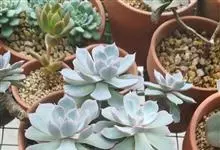 芙蓉雪莲是景天科拟石莲花属的植物。由于叶片表面覆盖着一层厚霜粉,通常呈现出白色;日照增多,温差增大后叶缘、叶尖会呈现出粉红色或橙红色。…全部>>