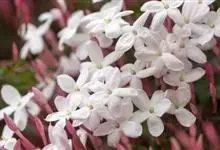 素馨花,木犀科素馨属多年生的攀援灌木植物。攀援灌木,小枝圆柱形,具棱或沟;叶对生,叶轴常具窄翼,小叶片卵形或长卵形;聚伞花序顶生或腋生,花序梗长,苞片线形,花萼无毛,裂片锥状线形,花冠白色,…全部>>
