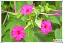 即紫茉莉,英文名:Four-o'clock,Marvel of Peru,为紫茉莉科、紫茉莉属多年生草本植物,一年生栽培。株高50~80cm。根粗壮,茎多分枝而散生。叶对生,卵形或心脏形。花数朵簇生…全部>>
