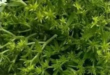 垂盆草别名石头菜、狗牙瓣、豆瓣菜等,为景天科景天属的多年生草本植物。不育枝及花茎细,匍匐而节上生根,直到花序之下;3叶轮生,叶倒披针形至长圆形,先端近急尖,基部急狭,有距;聚伞花序,花无梗,…全部>>