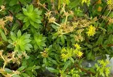垂盆草别名石头菜、狗牙瓣、豆瓣菜等,为景天科景天属的多年生草本植物。不育枝及花茎细,匍匐而节上生根,直到花序之下;3叶轮生,叶倒披针形至长圆形,先端近急尖,基部急狭,有距;聚伞花序,花无梗,…全部>>