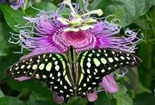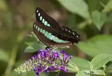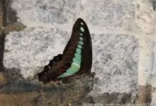 青带凤蝶Graphium sarpedon ,又名青凤蝶,是最普遍的中型凤蝶,飞行速度很快。青带凤蝶的翅膀中央有许多浅蓝色的斑点,很整齐地排列成一条直线。这些斑点由上而下逐渐变大,就像一条青色的带子。全部>>