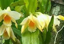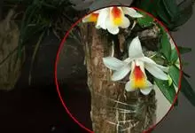 翅萼石斛是兰科石斛属的植物。茎肉质状粗厚,不分枝,干后为金黄色;叶革质,呈长圆形或舌状长圆形;总状花序出自近茎端,花苞片卵形,子房黄绿色,呈三棱形,花有橘子香气,萼囊淡黄色带橘红色,呈角状,花瓣为白色,…全部>>