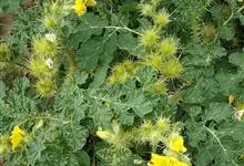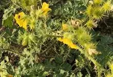 黄花刺茄是茄科,茄属一年生草本植物。直根系,主根发达,侧根较少,多须根。茎直立,基部稍木质化,株型类似灌木。高可达70厘米。叶互生,叶柄长0.5-5厘米,密被刺及星状毛;叶片卵形或椭圆形,…全部>>