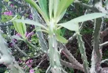 金刚纂,是大戟科大戟属的肉质灌木状小乔木。茎圆柱状,上部多分枝,叶片互生,少而稀疏,顶端钝圆,基部渐狭;花序二歧状腋生,苞叶膜质,总苞阔钟状,裂片半圆形,边缘具缘毛,雄花多枚;花期6-9月。…全部>>