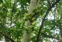 水同木是桑科榕属植物,常绿小乔木,树皮黑褐色,枝粗糙,叶互生,纸质,倒卵形至长圆形;基生侧脉短,侧脉6-9对;叶柄长1.5-4厘米;托叶卵状披针形,长约1.7厘米。榕果簇生于老干发出的瘤状枝上,近球形,…全部>>