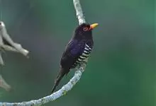 紫金鹃是一种羽色艳丽的小形杜鹃,体长约17厘米。雄鸟头、颈、胸和上体辉紫色,腹白色,具紫蓝色横斑;雌鸟上体淡铜绿色,下体白色,具淡褐色横斑。而相似种翠金鹃雄鸟上体和胸辉绿色,…全部>>