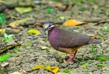 绿背金鸠体长约25厘米,是中等体型、尾甚短的地栖型斑鸠。下体粉红,头顶灰色,额白,腰灰,两翼具亮绿色。雌鸟头顶无灰色。飞行时背部两道黑色和白色的横纹清晰可见。主要栖息于2000米以下的山地森林中,…全部>>