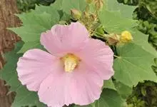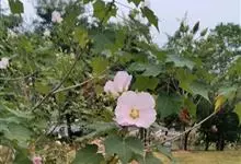 木芙蓉,锦葵科木槿属落叶灌木或小乔木。小枝上有细绒毛;叶片为卵状心形,托叶为披针形,常早落;花单生,花萼为钟形,花冠初为白色或淡红色,后逐渐变为深红色;果实为扁球形,有淡黄色的毛附着。花期8到10月。…全部>>