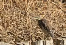 紫背苇鳽是鹭科、苇鳽属动物,为涉禽,体长约33厘米。头顶黑色,后头至尾上覆羽暗栗褐色;翅上覆羽橄榄黄色;下体浅棕黄色。多生活于水库和山脚边的稻田、芦苇丛、滩涂及沼泽草地,在西藏见于海拔2300米的农田,…全部>>