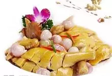 白切鸡又叫白斩鸡,是粤菜系鸡肴中的一种,始于清代的民间酒店。属浸鸡类。其特点为制作简易,刚熟不烂,不加配料且保持原味。白切鸡通常选用三黄鸡与沙姜、蒜茸、葱等食材,慢火煮浸后,晾干切块。成菜后,…全部>>