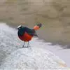 红头咬鹃: 体大,体长约33厘米,体重75-110克。头、颈暗绯红色;背、肩锈褐色。两翅黑色,翅上覆羽和内侧飞羽密被白色细虫蠹斑纹,初级飞羽黑色,外侧具白色羽缘;腰和尾上覆羽较多锈色。中央尾羽深栗色,…全部>>