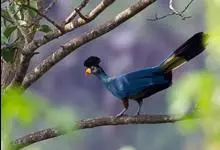 蕉鹃科有6属23种。该科鸟类一般为中等体型,体长35~75厘米,体重230~950克。体色或者大致呈绿色,翼和尾绿色、蓝色或紫色;或者全身大部分为青紫色或灰色。通常有漂亮的羽冠和长尾巴。该鸟具半对趾足,…全部>>