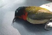 叉尾太阳鸟,雀形目太阳鸟科太阳鸟属留鸟;为小型鸟类,雄鸟头顶辉蓝绿色,上体橄榄绿色,腰明黄色,中央尾羽亮翠蓝色,羽轴针状延长,外侧尾羽黑色具白色端斑,头侧黑色,颜、喉和胸为绛红色,…全部>>