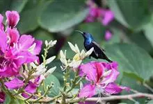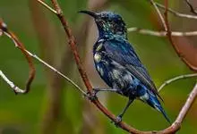 紫色蜜鸟为太阳鸟科花蜜鸟属的鸟类。分布于阿拉伯、伊朗、阿富汗、印度、尼泊尔、锡金、孟加拉、中南半岛、斯里兰卡以及中国大陆的云南等地,多栖息于海拔约950米以下的常绿阔叶林或村寨附近的丛林间。…全部>>