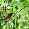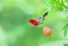 黄腰太阳鸟共有16个亚种,小型鸟类,体长10-15厘米。嘴细长而向下弯曲,雄鸟额和头顶前部金属绿色,头顶后部橄榄褐色。其余头、颈、背、肩、颏、喉、胸以及翅上中覆羽和小覆羽概为红色,腰黄色,…全部>>