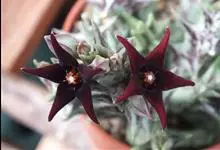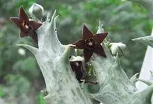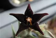紫龙角是夹竹桃科水牛角属多年生常绿肉质化植物。茎四棱细柱状,半直立或匍匐生长;棱缘波状齿突起,体表着紫褐色斑纹;多侧生分枝,整株灰绿色;花小,黑紫色,呈五星状张开,被白色绒毛。紫龙角原产非洲热带地区。…全部>>