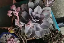 紫珍珠是景天科石莲花属的多年生肉质草本植物。植株中小型;叶片肉质,匙形,呈莲座状紧密排列;叶片粉紫色,叶缘呈粉白色,光照充足时颜色亮丽,不足时叶色会呈现深绿色或灰绿色,叶面光滑,被轻微白粉,…全部>>